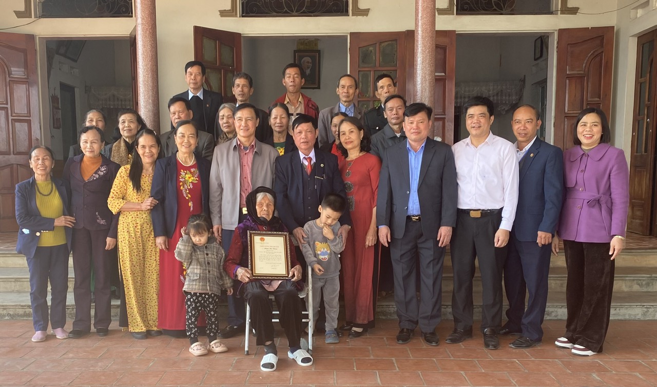 Chiều ngày 13-01, Đoàn công tác của tỉnh do đồng chí Vũ Duy Hoàng, Uỷ viên Ban Thường vụ, Trưởng Ban Tuyên giáo Tỉnh uỷ làm trưởng Đoàn đã tới thăm, tặng quà và chúc Tết gia đình các cụ trên 100 tuổi tại thị trấn Hương Sơn. Ở huyện có đồng chí Dương Quang Bạo, Phó Bí thư Thường trực Huyện uỷ cùng lãnh đạo chính quyền địa phương.